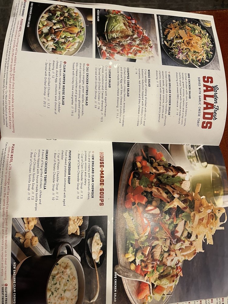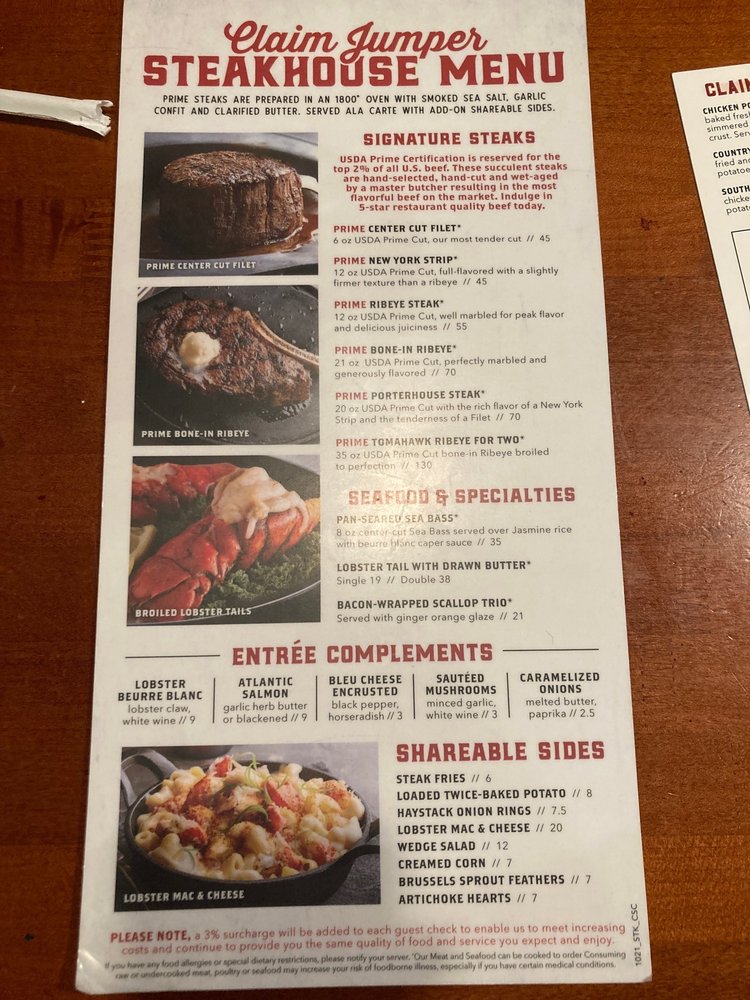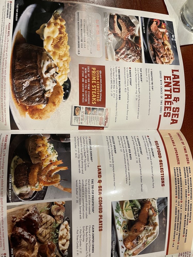 Claim Jumper Steakhouse in Rancho Cucamonga offers a diverse menu of steak, American, and seafood options. With amenities like outdoor seating, full bar, and waiter service, this casual restaurant is perfect for any occasion. Customers appreciate the friendly and professional staff, as well as the delicious combo meals and loaded mashed potatoes. The Black Tie Pasta, BBQ Chicken Pizza, and lemon drop cocktails are highly recommended. Don't miss out on the happy hour specials and affordable appetizers like lemon pepper zucchini and artichoke dip. Despite a few minor issues like pricing and menu changes, Claim Jumper Steakhouse remains a popular choice for its generous portions and comforting dishes. Overall, it provides a welcoming and satisfying dining experience for families and friends alike.